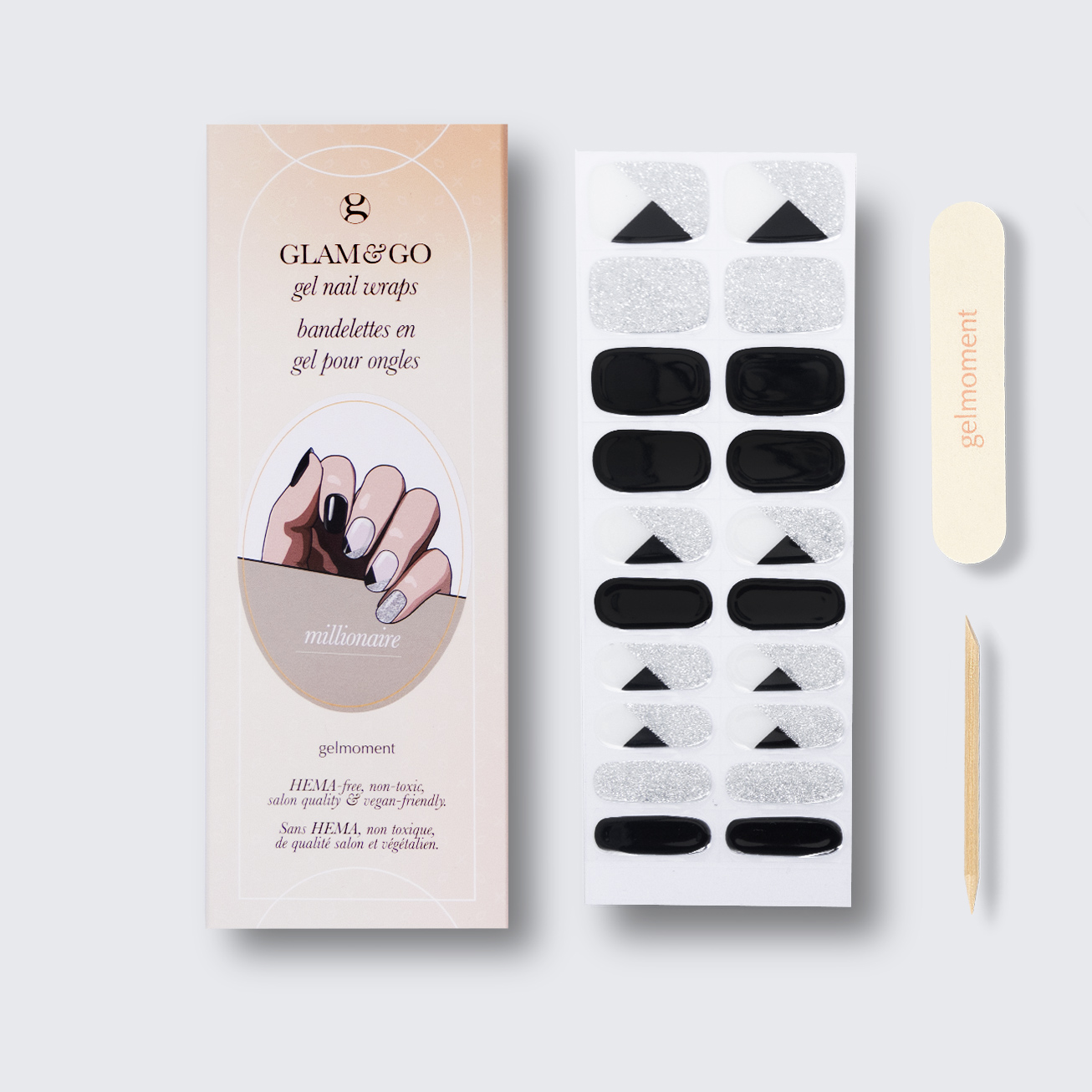 Take a moment to give yourself a head-turning, DIY gelmoment experience in a few easy steps with our GLAM & GO gel nail wraps.